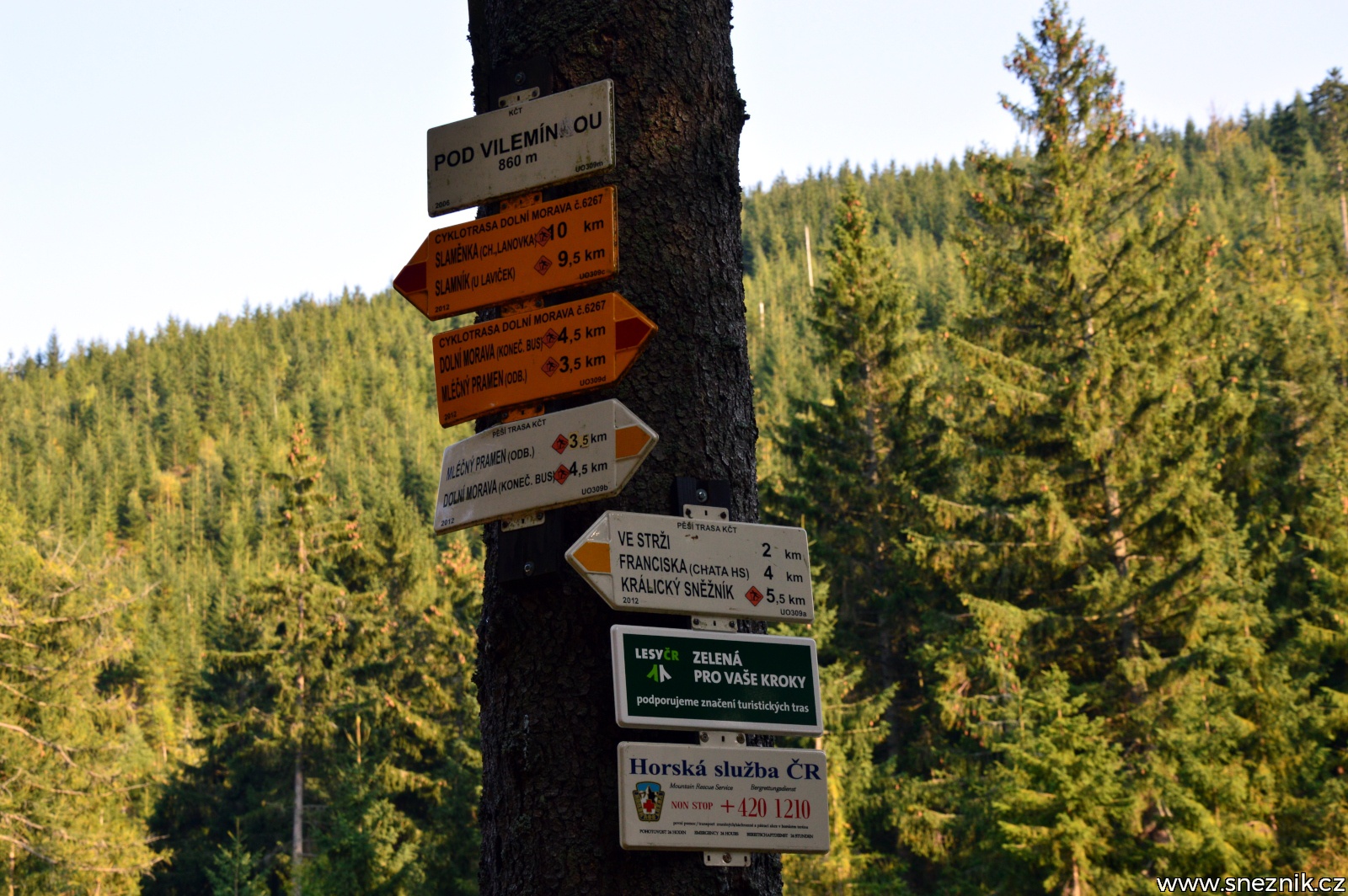 Rozcestník "Pod Vilemínkou" 860 m n.m.