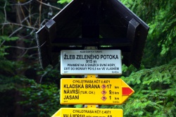 Rozcestníky Rozcestník "Žleb Zeleného potoka" 915 m n.m. Zelený potok pramení na severních svazích Sviní hory, ústí do Moravy po 6,5km ve Vlaském.